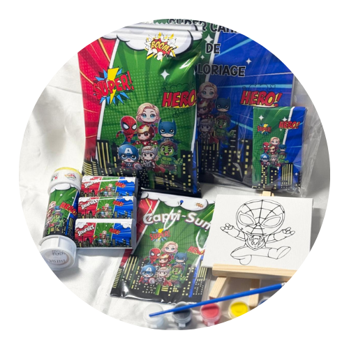 Nous proposons une large sélection de thèmes (licorne, safari, princesse, dinosaure, bohème, neutre, super-héros).